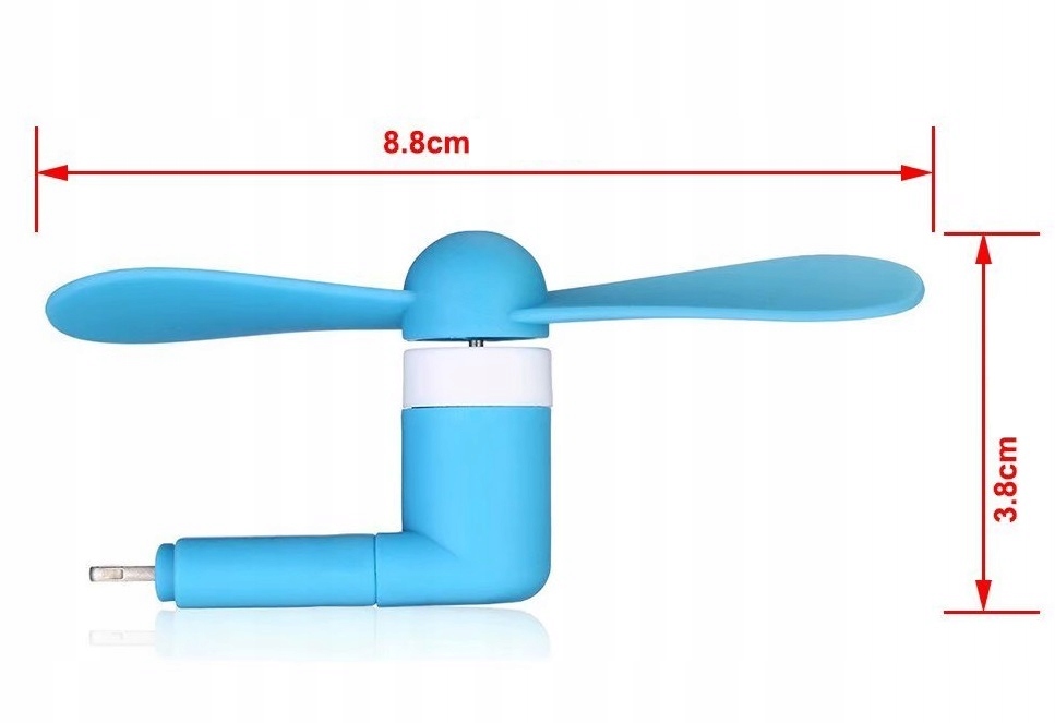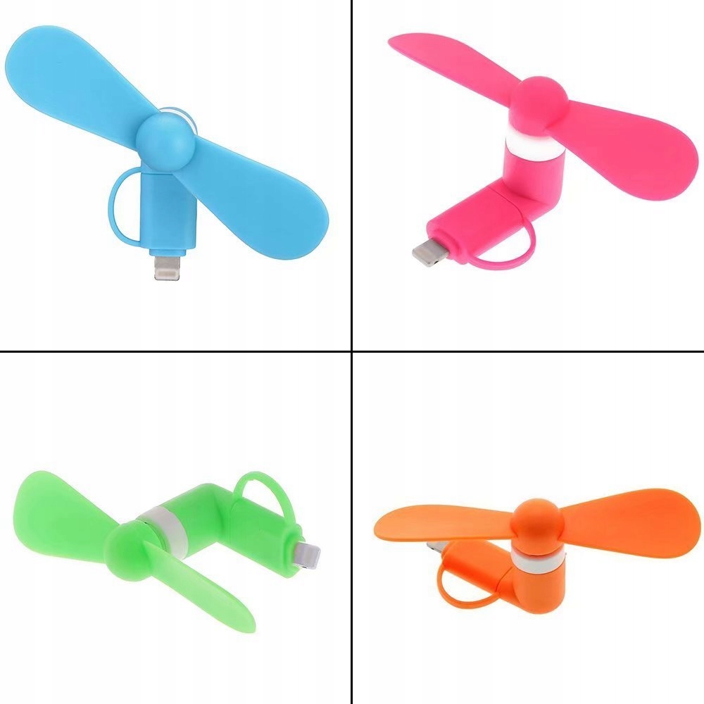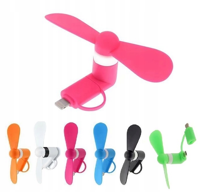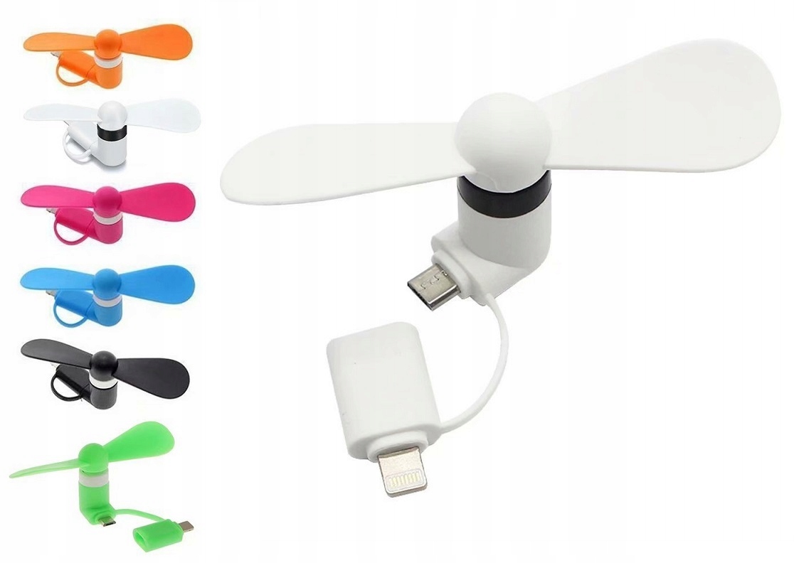 Wiatraczek posiada 2 końcówki - micro USB oraz do iPhone’a – dzięki czemu ma uniwersalne zastosowanie.