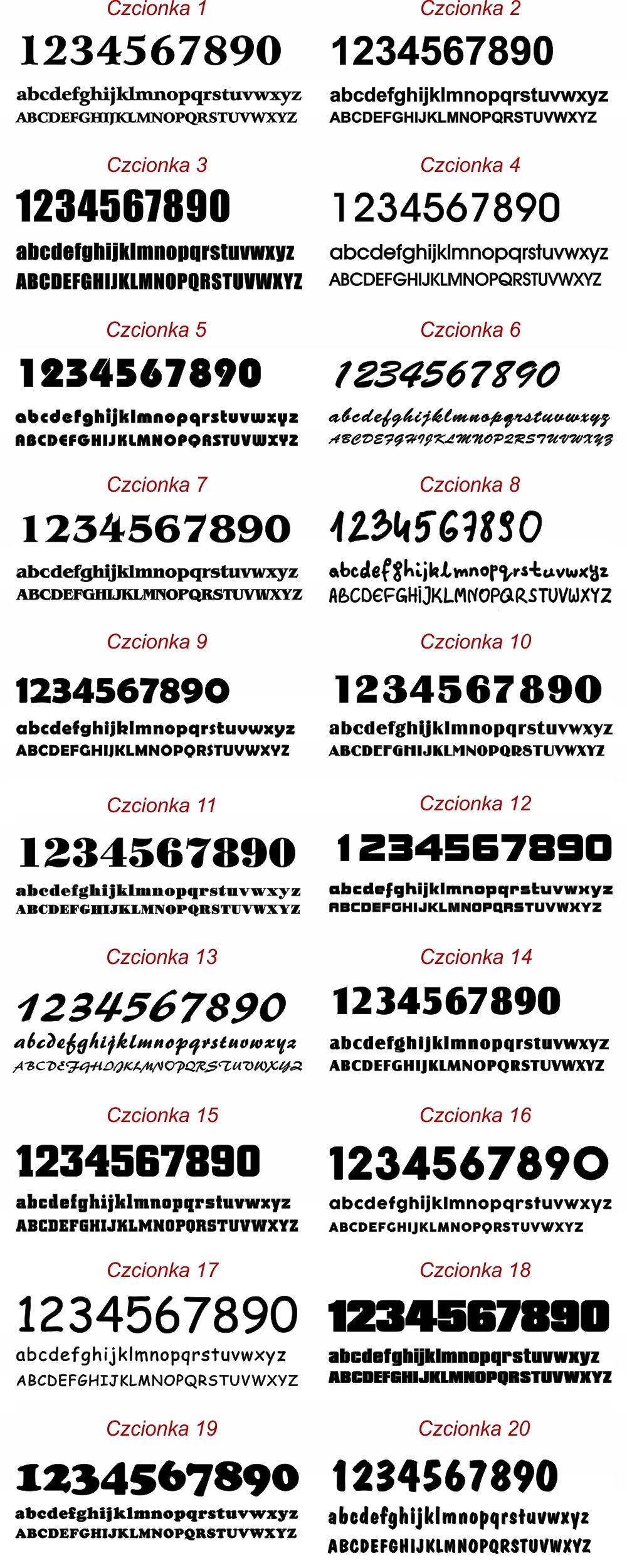Poniżej wzory do wyboru: