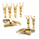 Konstrukcja wtyku widełkowego została zaprojektowana tak, aby móc zagwarantować najwyższą jakość i najlepsze brzmienie audio. Złącze wykonano z beztlenowej miedzi OFC, która została pozłocona 24 karatowym złotem! Widełki stworzone zostały do współpracy ze sprzętem Hi-End'owym, gdzie liczy się największa powierzchnia styku na drodze wzmacniacz/amplituner-głośniki, przy zachowaniu najwyższej jakości przesyłu dźwięku.