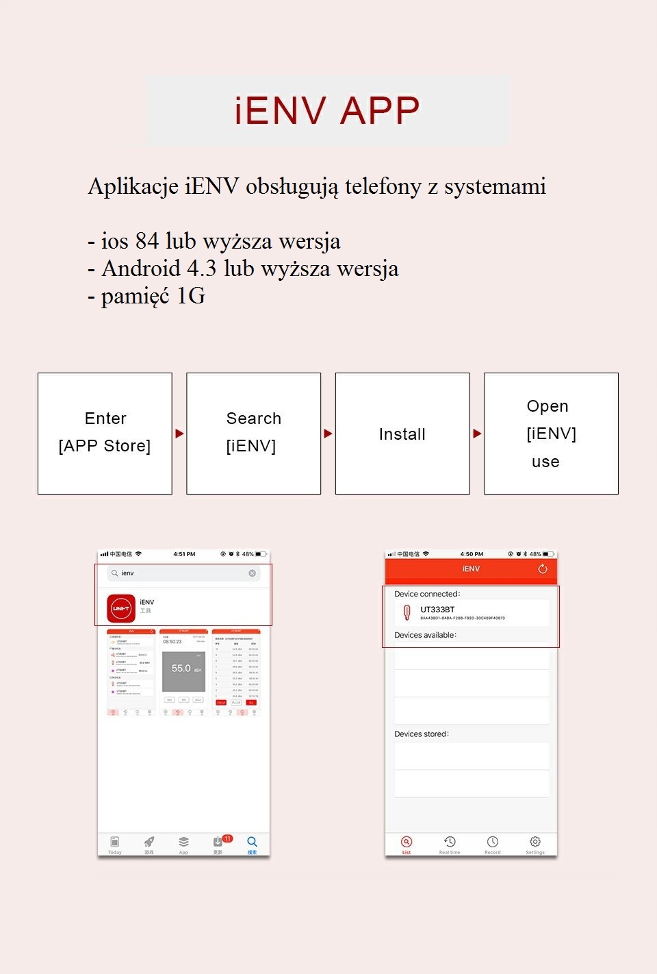 Przenośny miernik temperatury i wilgotności powietrza. Przeznaczony do pomiaru w kanałach wentylacyjnych i wylotach z kratek wentylacyjnych. Pomiar temperatury dokonywany jest za pomocą termistorowego czujnika temperatury. Wbudowany duży wyświetlacz LCD zapewnia jednoczesny odczyt temperatury i wilgotności. Zastosowanie w systemie HACCP do monitorowania temperatury i wilgotności w tzw. punktach krytycznych celem obserwacji temperatury i wilgotności powietrza. Termohigrometr posiada łączność bluetooth oraz aplikację iENV dostępną na sklepie Google Play oraz App Store.