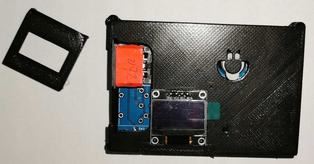 Obudowa skręcana na zewnątrz (fi otworu 2.5mm, 4 sruby w komplecie), z powodu umiejscowienia OLED zakrywana jest górna dioda power oraz (opcjonalny) przycisk reset. Nie jest to wada obudowy a dopasowanie do (niefortunnego) ułożenia elementów na płytce zaprojektowanej przez HACKUP.