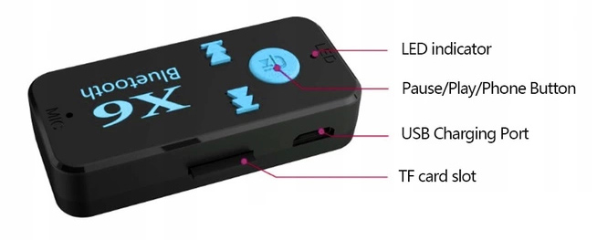 Przenośny odbiornik dźwięku bluetooth umożliwia bezprzewodowe przesyłanie dźwięku z telefonu, tabletu lub laptopa i odtwarzać go w radiu samochodowym, słuchawkach lub wieży HiFi