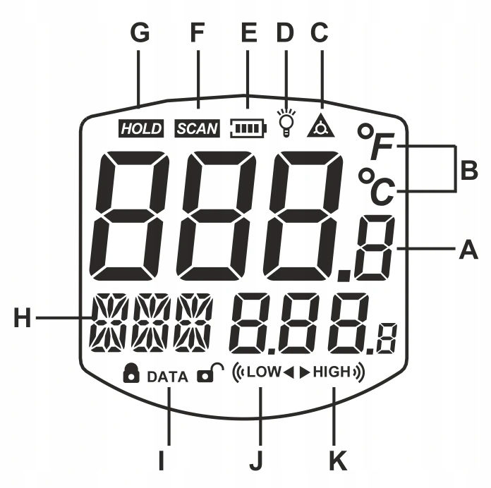 • Rozdzielczość: 0,1°C (°F)