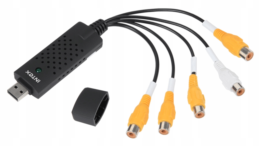 Konwerter umożliwiający zgranie analogowego sygnału video i audio stereo z kamery analogowej lub magnetowidu (kasety VHS) do postaci cyfrowej na dysk twardy komputera przez port USB.