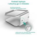 Kształt podstawki sprzyja również poprawie przepływu powietrza wokół laptopa, co pomaga w wydajniejszej pracy komputera.