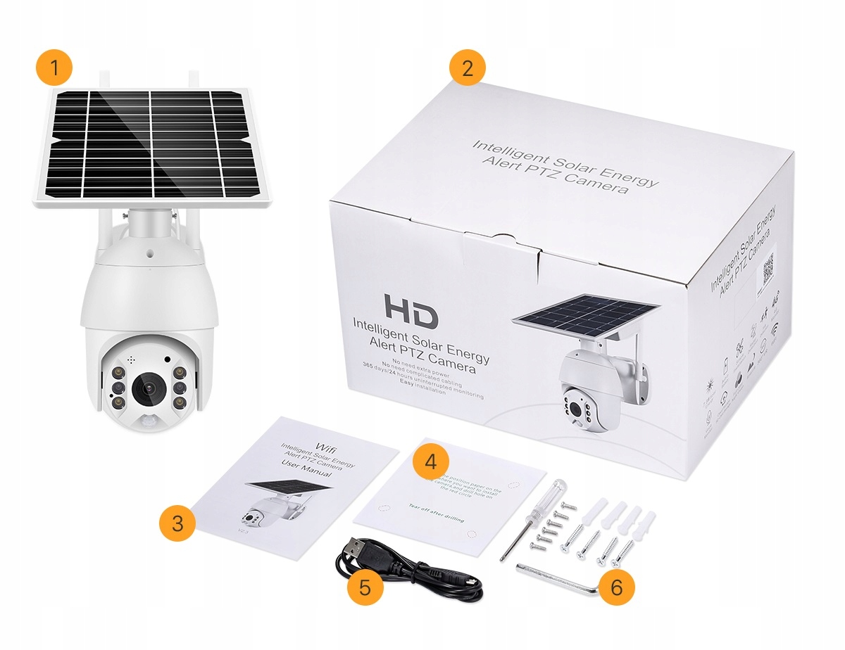 KAMERA SOLARNA ZEWNĘTRZNA OBROTOWA IP FULL HD na kartę SIM + 6 baterii typu 18650 GRATIS