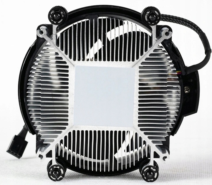 Fabrycznie nałożona pasta termoprzewodząca. Nawiew w dół ma sprawiać, że owiewany jest obszar wokół podstawki CPU.