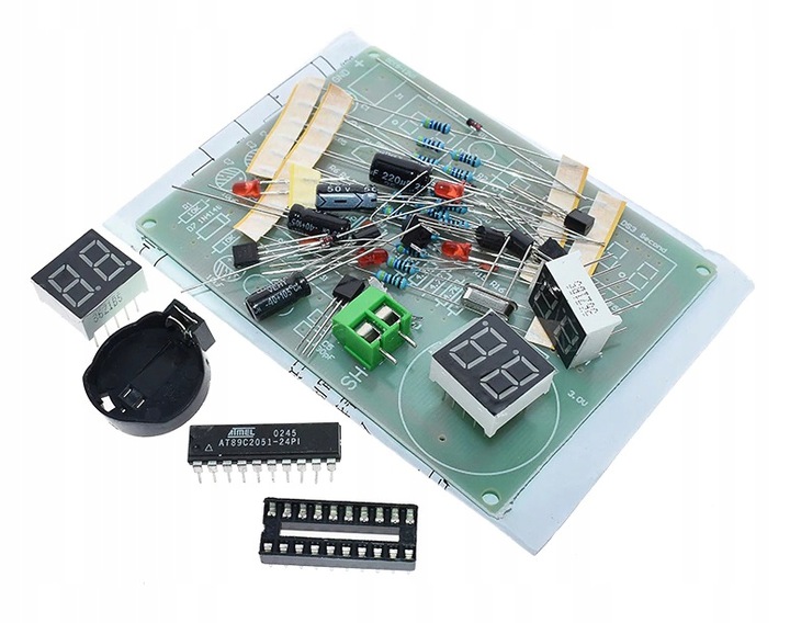 Elektroniczny cyfrowy zegar led AT89C2051 zestaw do własnoręcznego montażu . Podświetlenie w kolorze czerwonym , gniazdo na baterię CR2032 podtrzymującą czas podczas zaniku zasilania. Moduł oparty na układzie Atmel AT89C2051.