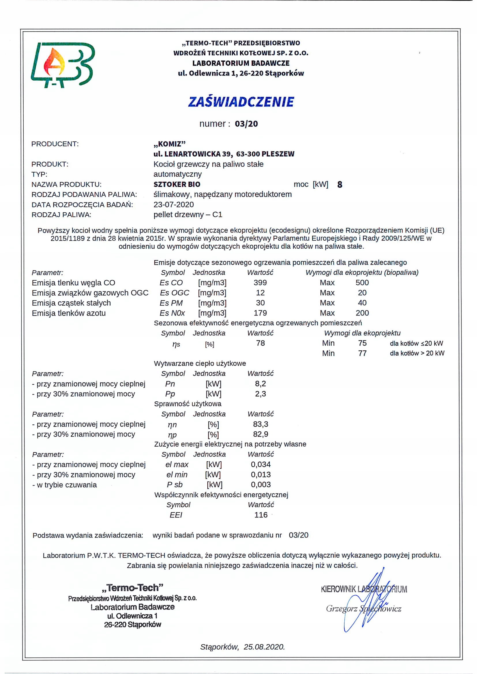 Kotły SZTOKER BIO spełniają również wymagania ekoprojektu (Ecodesign)