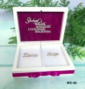 Крышка изнутри облицована велюром ( или другой отделкой в зависимости от модель) на которой наклеен декор .как на век коробки графика
