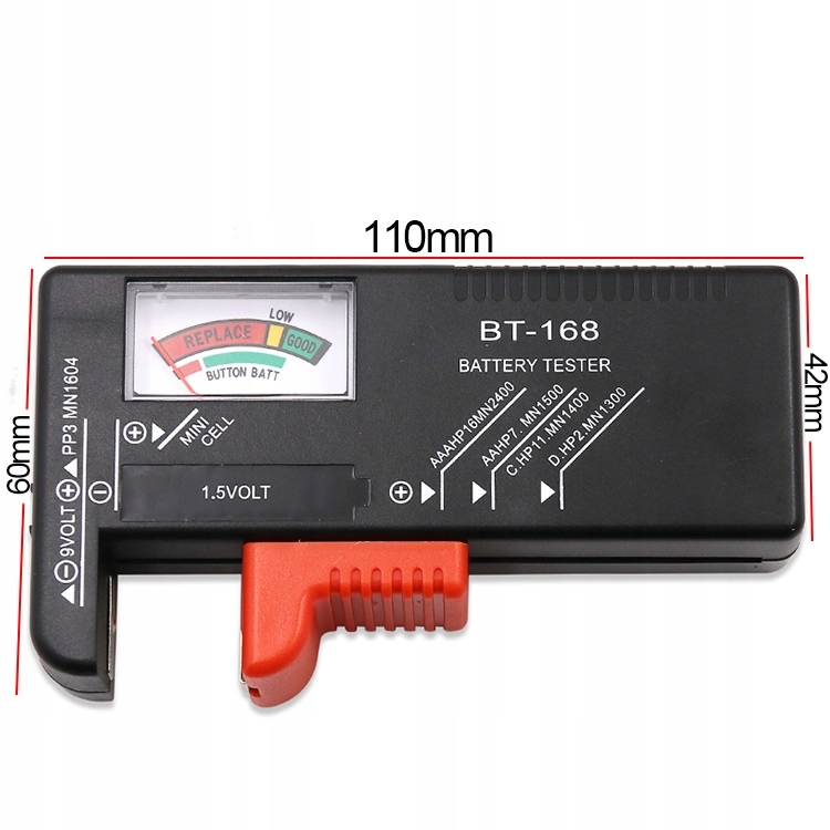 Tester ma na celu określenie stanu baterii, za pomocą wskaźnika określimy czy testowana bateria jest dobra / słaba / czy kwalifikuje się do wymiany.