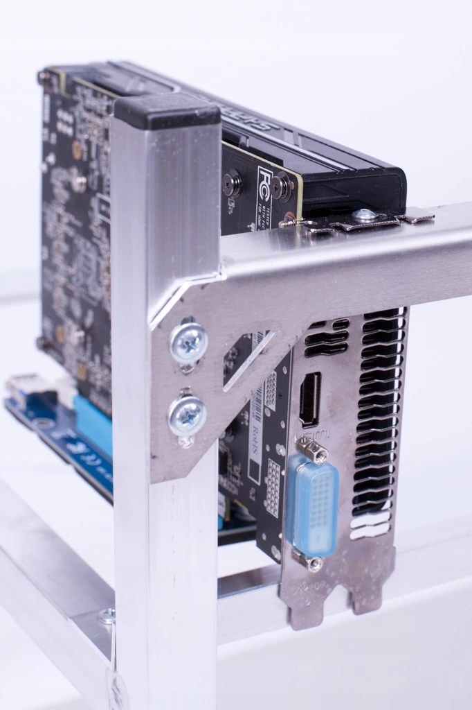 Планка для крепления адаптеров имеет возможность регулировки вверх / вниз, что дополнительно облегчает точная установка карт / что изображено на фото /