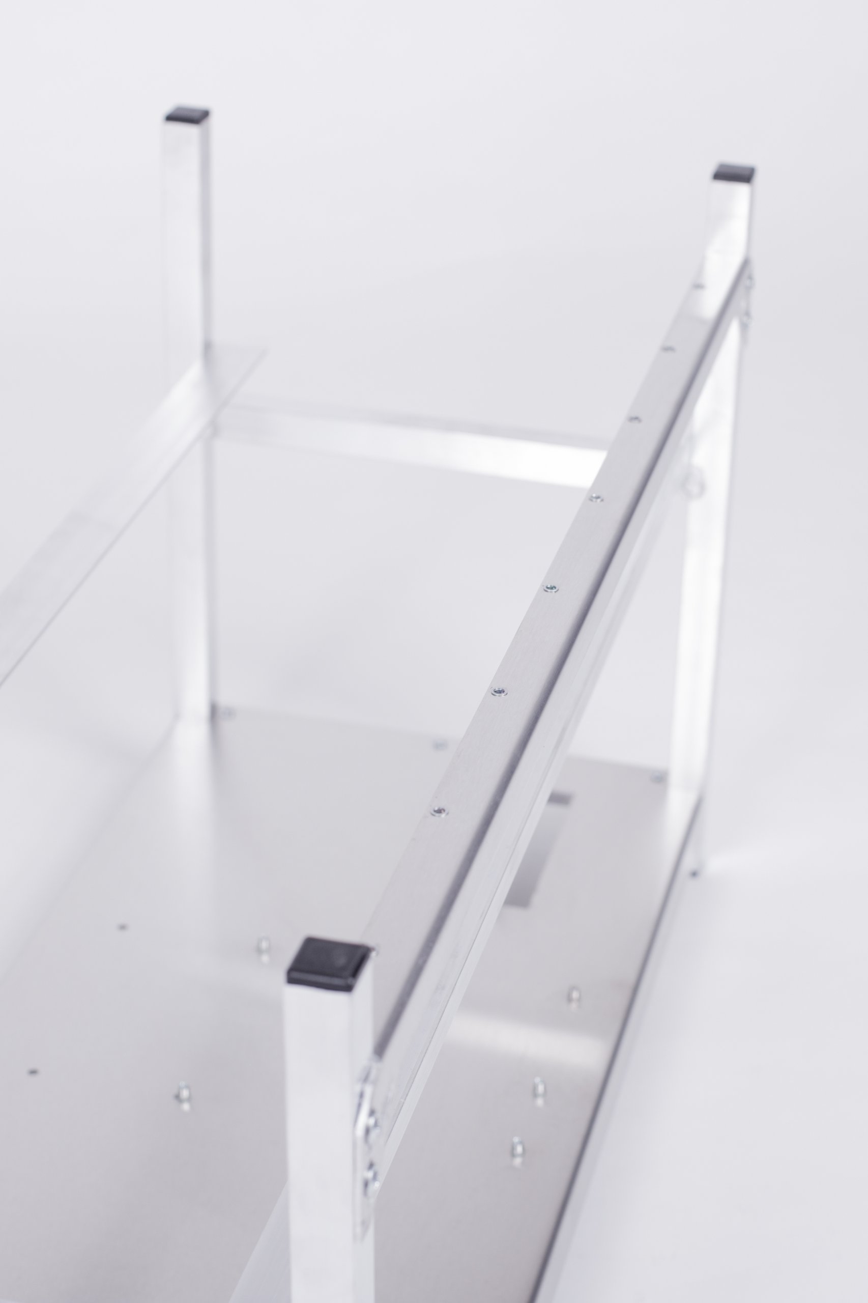 Nogi wykonane są ze spawanych profili aluminiowych 20 x 20 zakończone plastikowymi zaślepkami.