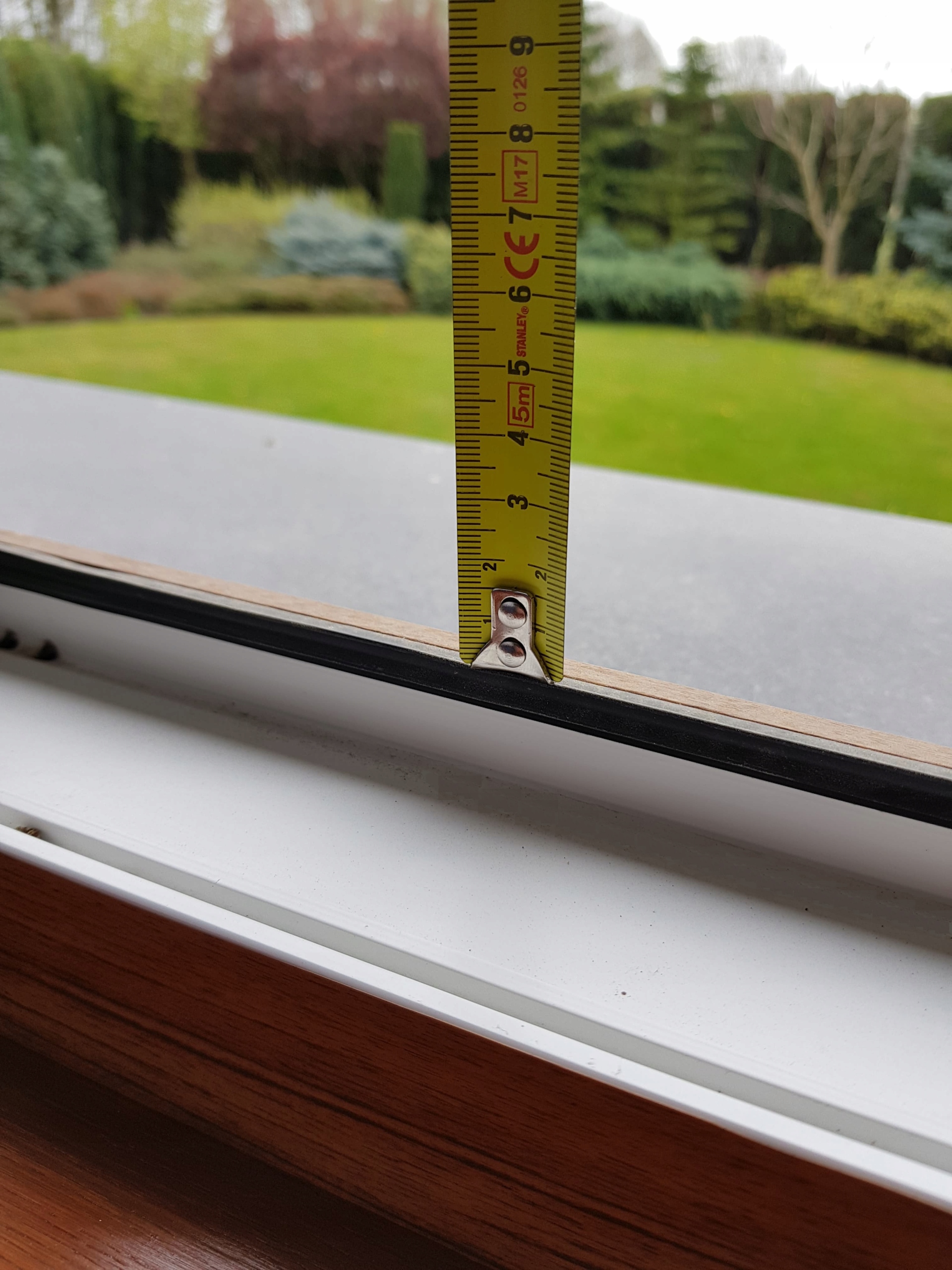 B. Zmierz wysokość ramy otwartego skrzydła okna. (od uszczelki do uszczelki)