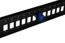 Posiada otwory pozwalające na montaż w panelu za pomocą śrub jak i na zatrzask.