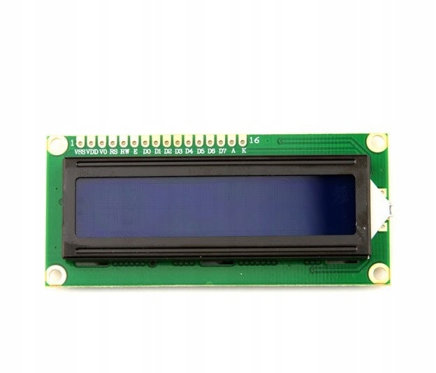 Wyświetlacz LCD 16x2 z niebieskim podświetleniem. Wyświetla 16 znaków w dwóch rzędach. Kompatybilny z kontrolerem HD44780. Idealny do projektów z Arduino. Może być używany z PIC, AVR, STM32. Dostarczany bez konwertera IIC/I2C.