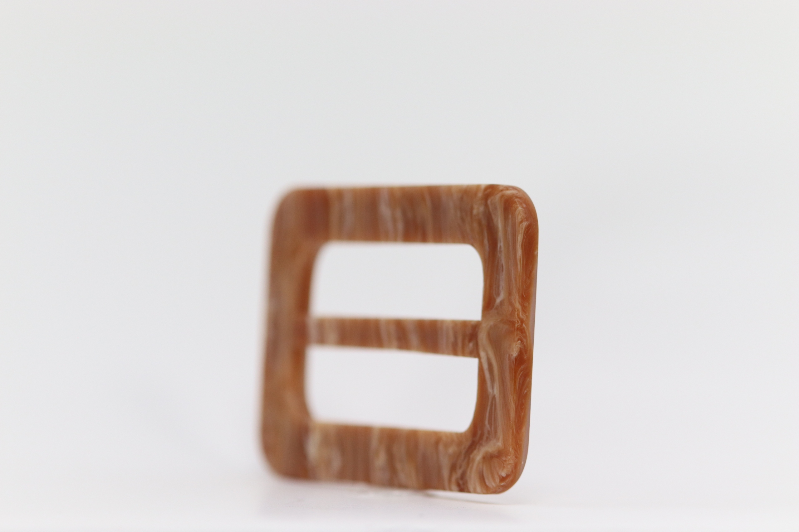 Klamra regulacyjna wykonana z wysokiej jakości plastiku, w kolorze brązowo białym.