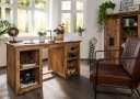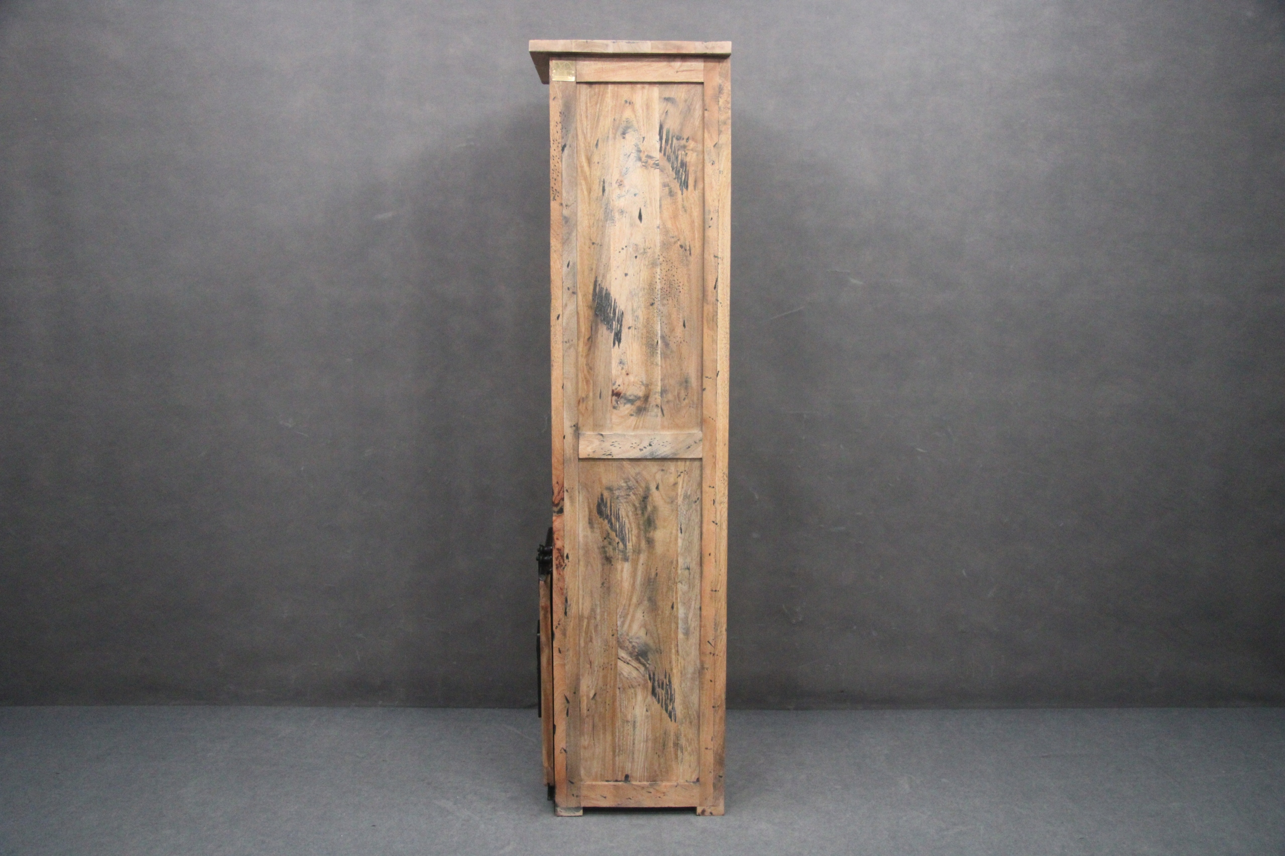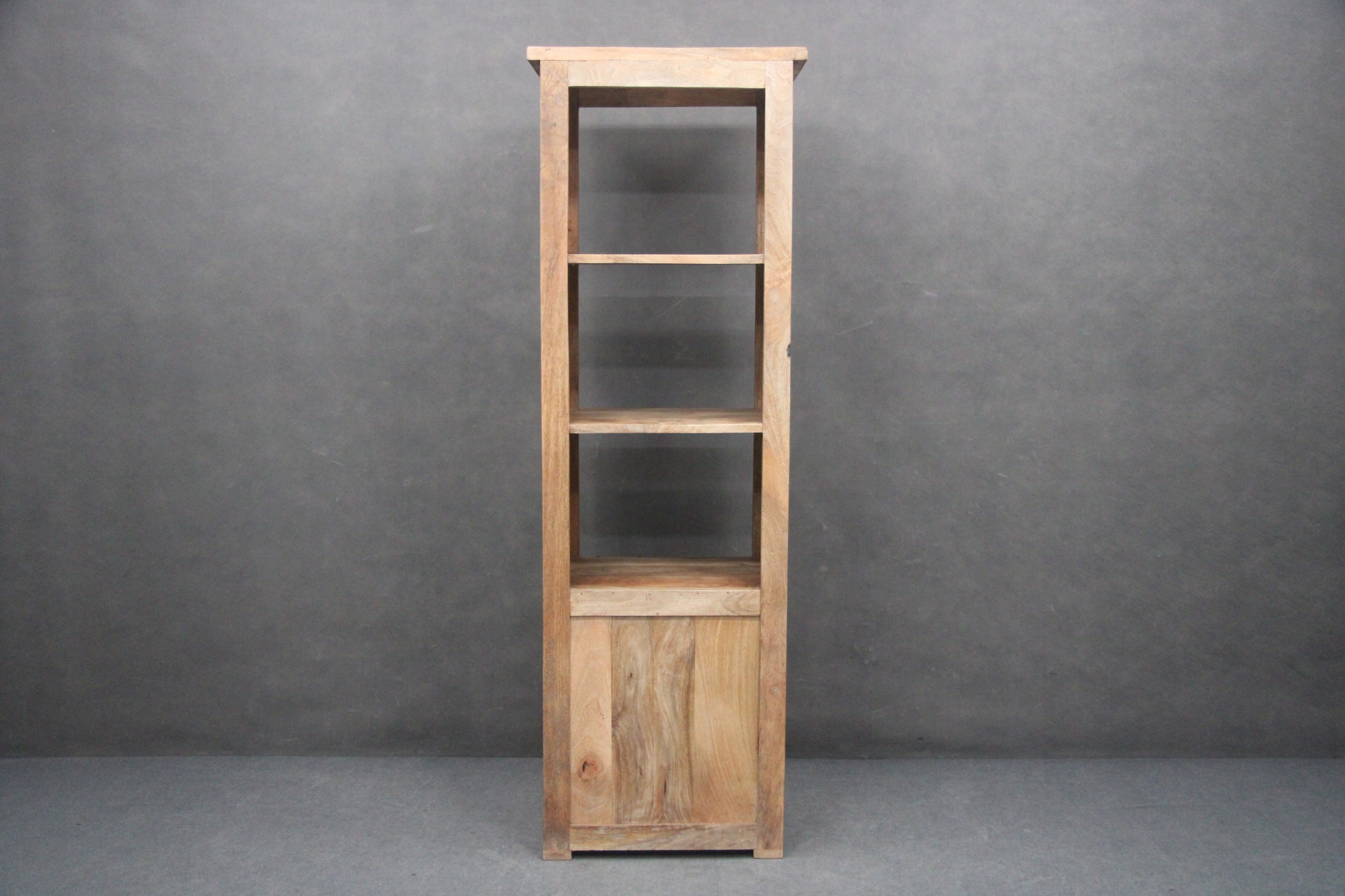 Regał jest nowy. Wykonany z Indyjskiego drewna mango. Każdy mebel jest unikalny, ze względu na ręczną produkcję oraz gatunek drewna. Wyróżnia się kolorystyką oraz strukturą drzewa (małe pęknięcia, dziurki, delikatne wgłębienia, które są wykonywane celowo), podkreśla to indywidualność mebla. Drzwiczki wykonane w stylu industrialnym na rolkach z wykończeniem metalowym na frontach.