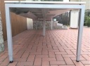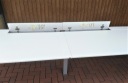 Biurko niemieckiej firmy VS to połączenie prostego designu i wysokiej jakości materiałów. Blat składa się z trzech elementów - głównej płyty i dwóch mniejszych, otwieranych. Zastosowane rozwiązanie umożliwia wygodne ułożenie przewodów. Specjalna maskownica w formie szczotek pozwala na wyciągnięcie kabli w dowolnym miejscu. Pod blatem znajduje się materiałowy uchwyt, dzięki czemu zachowanie porządku jest znacznie łatwiejsze. Biurko wyposażone zostało w nogi wkręcane w metalowy stelaż, posiadające możliwość regulacji aby zapewnić pełną stabilność mebla. Wysokość blatu biurka jest regulowana, co pozwala na wygodną pracę zarówno niskim, jak i wysokim osobom. Połączenie dwóch biurek specjalną nogą umożliwiającą wygodną pracę.