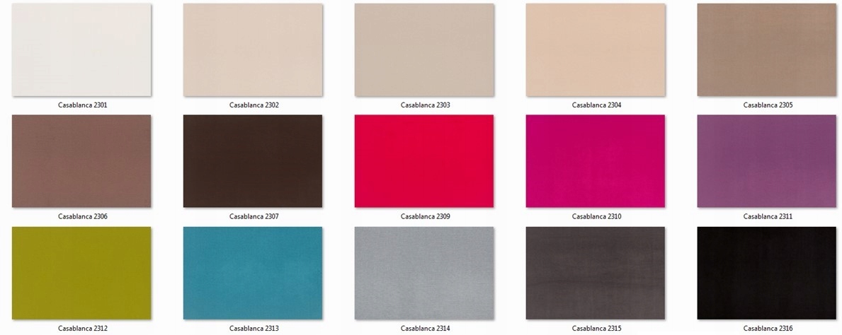 Casablanka- Tkanina welurowa, miękka i bardzo przyjemna w dotyku. Technologia CLEAN COMFORT i Cleanaboo ogranicza wchłanianie płynów. Bardzo żywa kolorystyka. Wysoka odporność na ścieranie