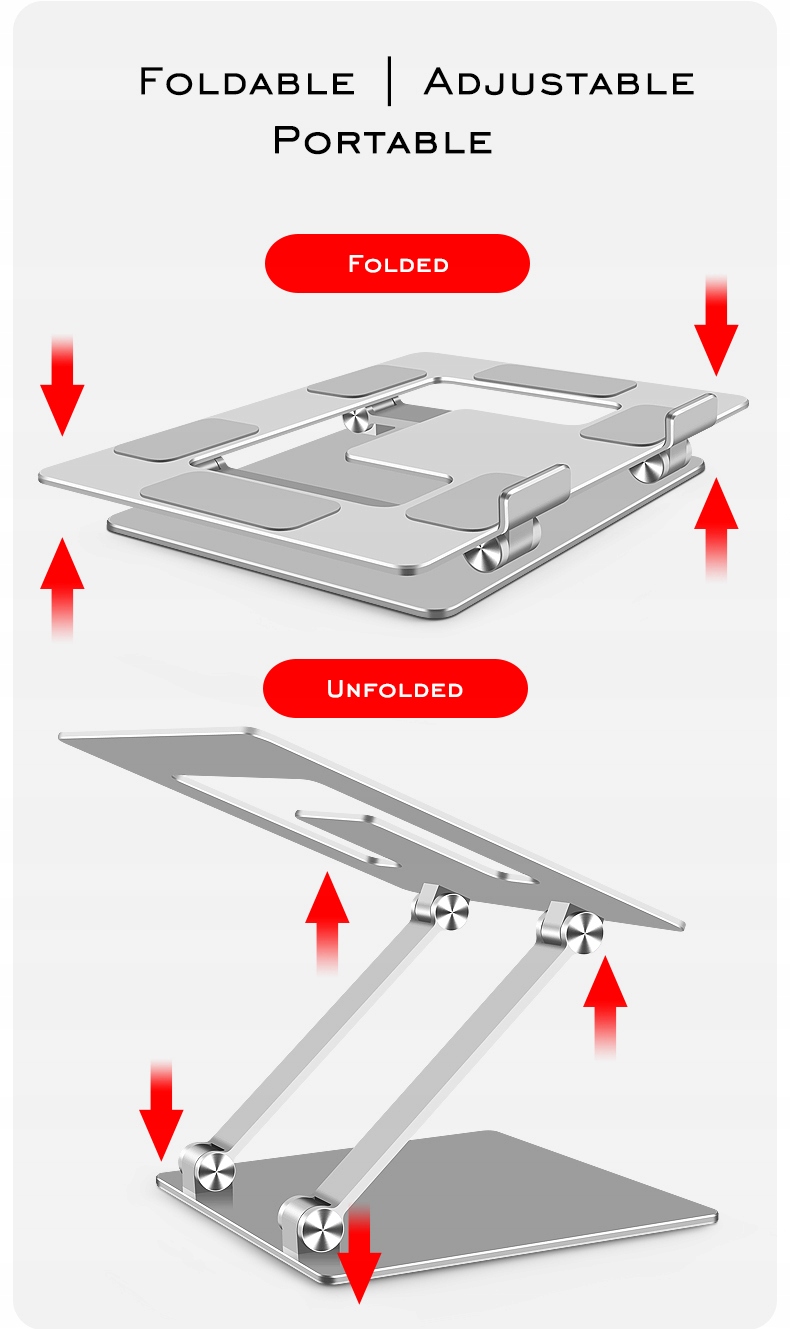 Подставка благодаря своей конструкции чрезвычайно мобильна, ее размеры в сложенном виде 300 * 220 * 57 мм так что мы можем улучшить ваш рабочий комфорт в любом месте. Стоит вернуть обратите внимание на вес устройства, который составляет всего:, так что ручка не будет тяготеть к нам в рюкзаке или сумку.