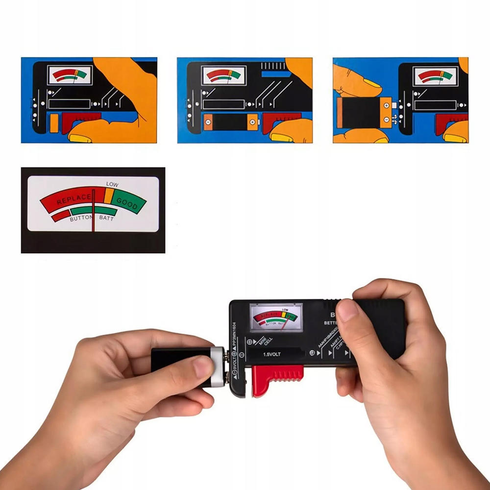 Miernik baterii to produkt, który doskonale sprawdzi się w Twoim domu, czy garażu. Niewielkie urządzenie umożliwia szybki oraz niezwykle prosty test sprawności baterii i akumulatorków. Obywa się on poprzez zetknięcie biegunów baterii z metalowymi blaszkami testera. Wynik pomiaru jest ukazany za pomocą wskazówki na analogowej skali. Niewielkie wymiary miernika sprawiają, że zmieści się on nawet do kieszeni spodni.