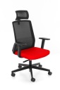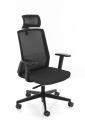 Zagłówek jest wyraźnie profilowany i tapicerowany czarną siatką - tak jak oparcie.