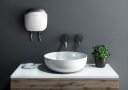Компактный размеры позволяют удобно устанавливать устройство как под, так и над умывальником, в то время как интеллектуальный вращающийся дисплей регулирует отображение температуры в соответствии с направлением монтаж устройства.