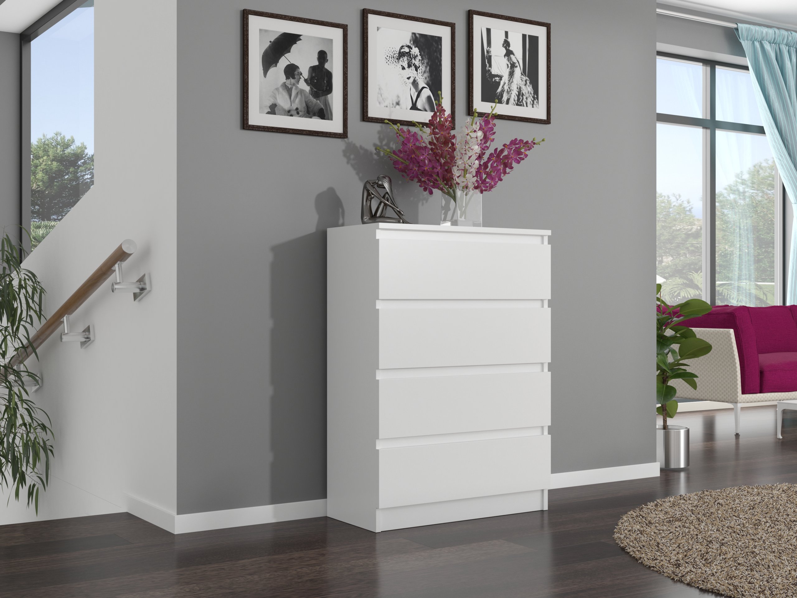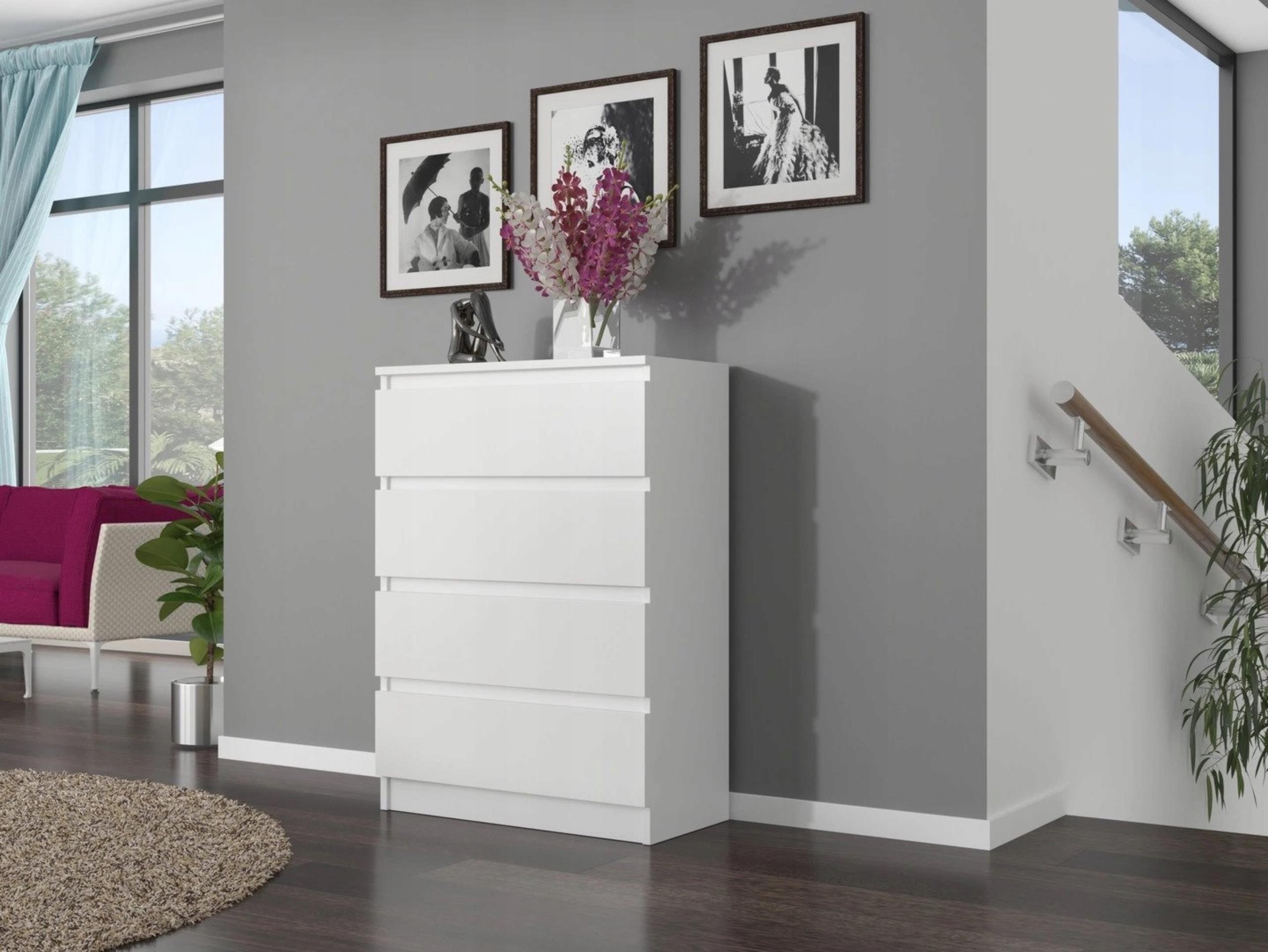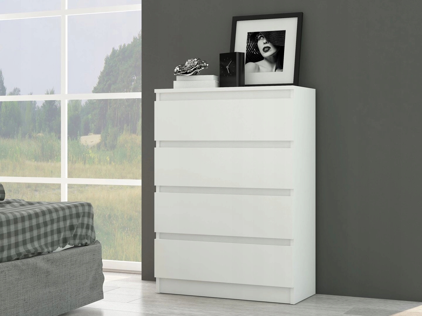 Стильный комод из коллекции современный стиль и элегантность. Обновит интерьер любой спальни и гостиной. Конструкция минималистичный, но прочный и прочный. Благодаря bezuchwytowym фасадам выдвижных ящиков комод-это удобная в использования. помещения.