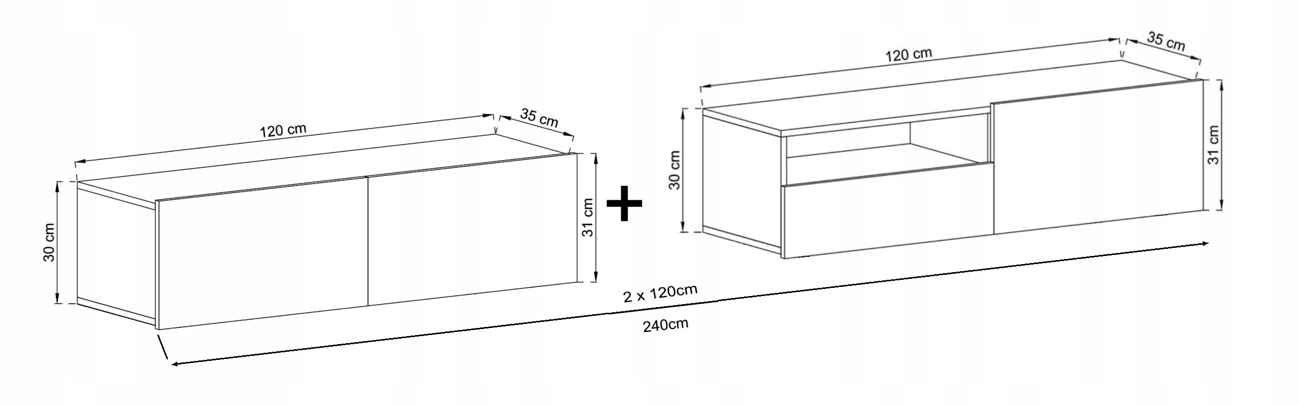 Набор состоит из двух шкафов 120cm, расположенных рядом друг друга.
