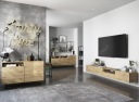 Dwie nowoczesne szafki w kolorze dąb artisan, dające łącznie trzy przestronne zamykane komory oraz jedną szufladę. Szafki te są umieszczone obok siebie tworząc jeden długi, bardzo ładnie prezentujący się mebel. Posiadają one drzwiczki uchylne z blokadą ich opadania (do regulacji). Zapewnia to swobodny dostęp do ich wnętrza. Połączenie tych dwóch szafek daje ogromną pojemność tego zestawu.