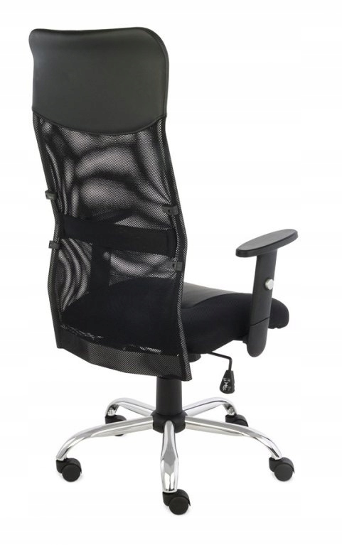 Спинка обита сеткой и экокожей черного цвета.
