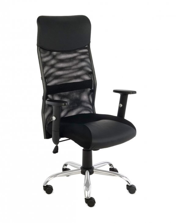 Спинка обита сеткой в верхней части экокожа.