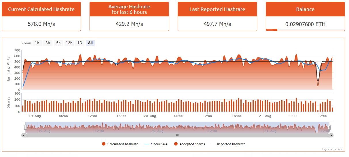 Moc wydobycia 500 Mh/s +- 1 % wahania