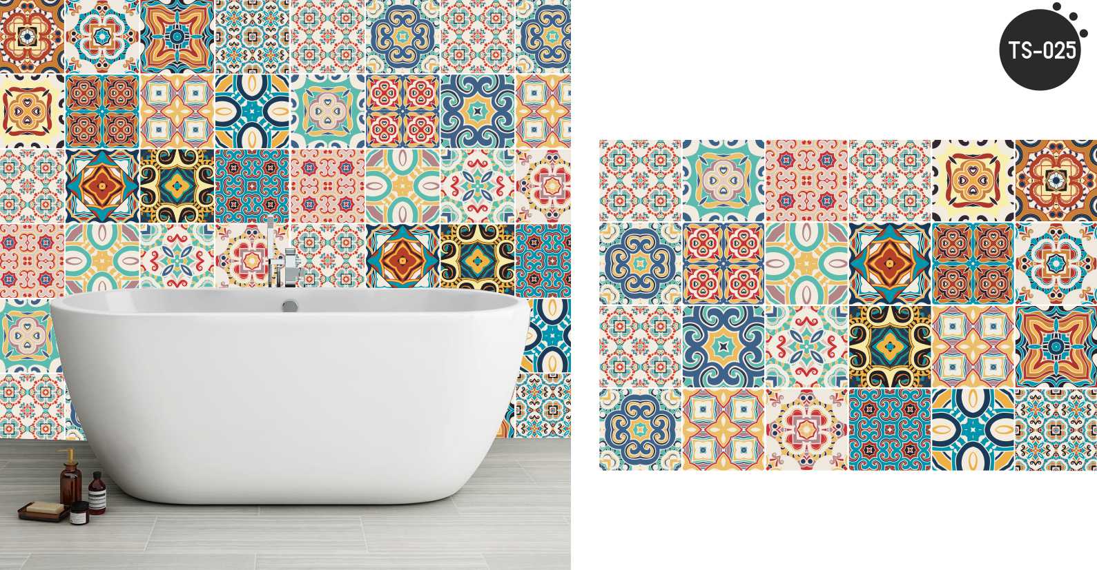 Arkusz zawiera 24 naklejki 10x10cm z folii samoprzylepnej Naklejki nadają się do dekoracji płytek ceramicznych, kafelków, schodów, ścian.Z racji laminatu mogą również być używane jako naklejki podłogowe