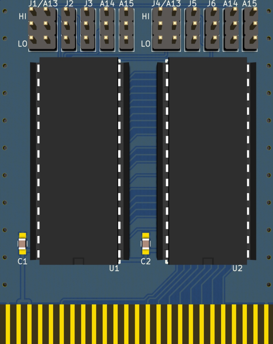 Картридж разделен на 4 части по 32 ком (две интегральные схемы, которым назначены по 2 двухпозиционные перемычки (4 комбинации), которыми выбирается один из игровых банков)