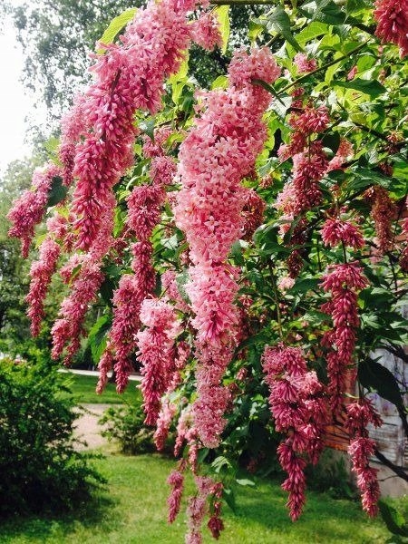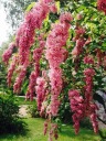 Это ценный сорт из-за эффектных цветов, которые очень обильно появляются в мае. Цветки декоративные, красно-розовые, красиво ароматные. Цветочная метелка. Преимущество этого вид состоит в том, что, кроме первоначально сползающих соцветий, достигающих 25 см, он не образует корневые присоски. Надежный сорт сирени, вырастающий до 2-3 м в высоту. Может быть проводится в виде небольшого деревца или рыхлого куста. Листья зеленые, гладкие, сердцевидные.
