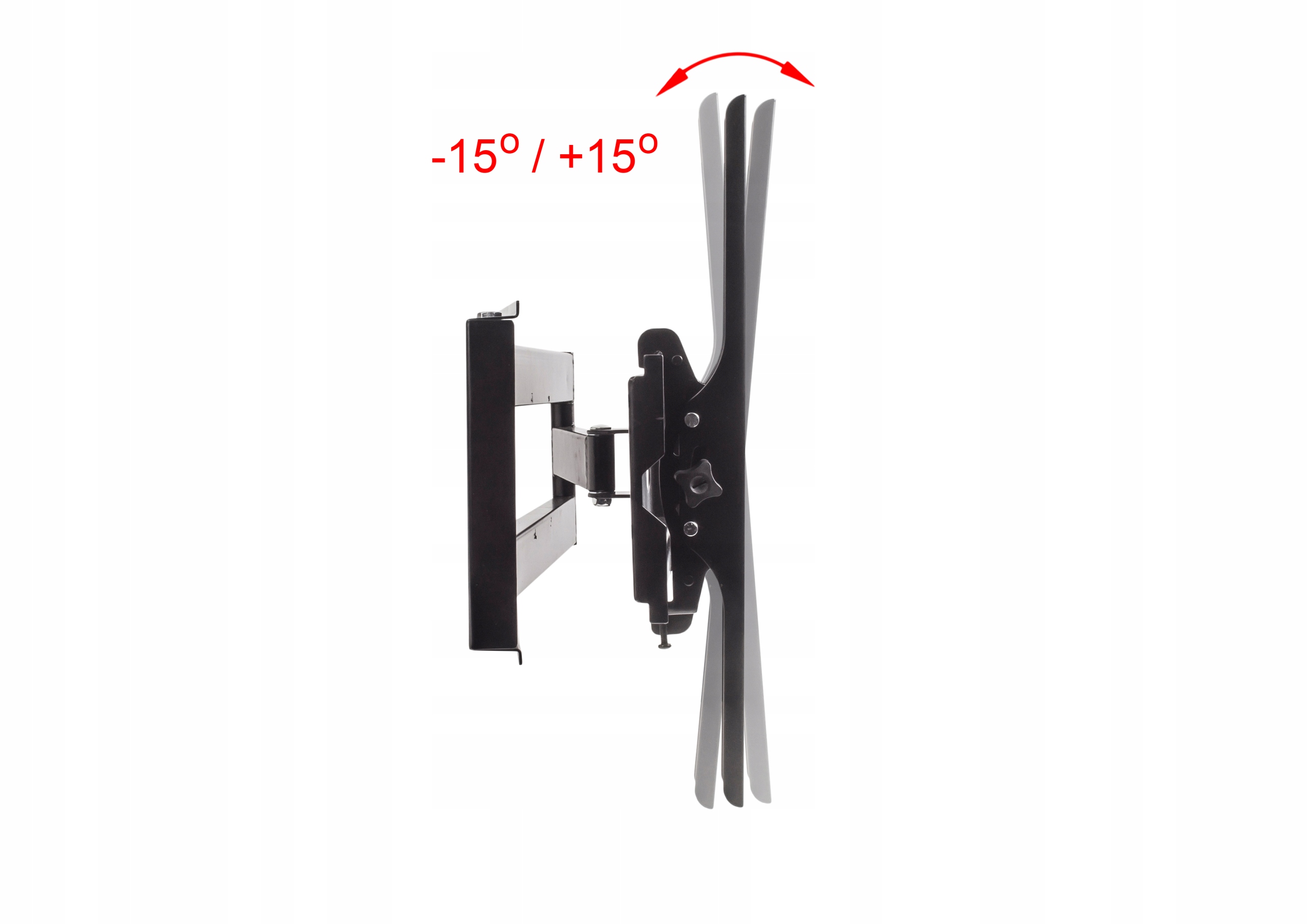 Uchwyt jest przeznaczony dla użytkowników którzy korzystają z jednego ustawienia telewizora. W przypadku kiedy korzystamy z kilku ustawień jednocześnie np. raz telewizor jest przy samej ścianie a innym razem telewizor prostopadle do ściany to nie jesteśmy w stanie wypoziomować telewizora dla obu ustawień jednocześnie. Uchwyt posiada regulację poziomowania poprzez 4 śruby ale za każdą zmianą ustawienia konieczna jest nowa regulacja poziomu. Dlatego uchwyt ten proponujemy dla osób które raz ustawią telewizor i później nie zmieniają jego pozycji.