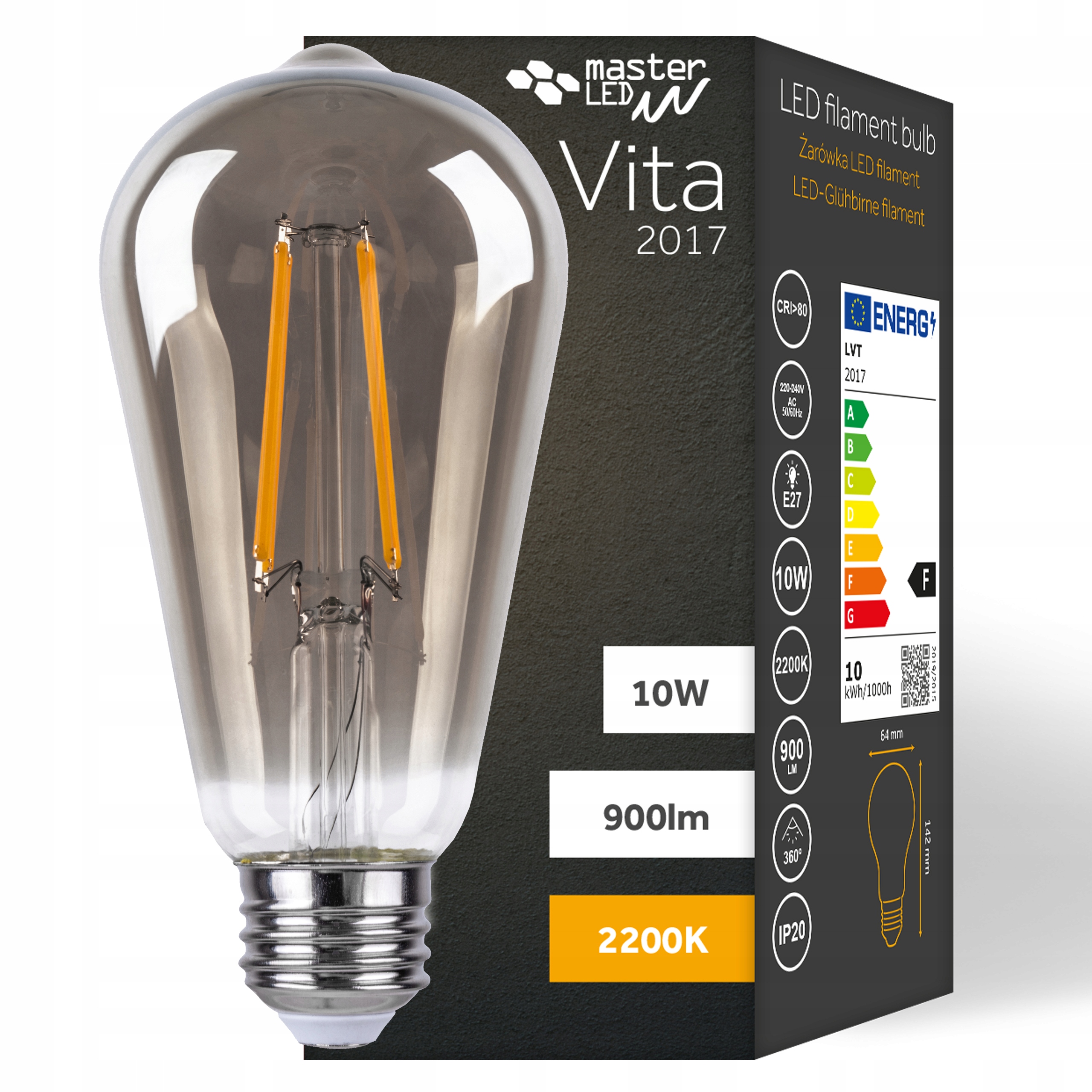 Żarówka Filamentowa serii Vita o zabarwionym szkle w stylu retro, idealnie sprawdzi się w klasycznie wyglądających oprawach, lampkach i lampionach.