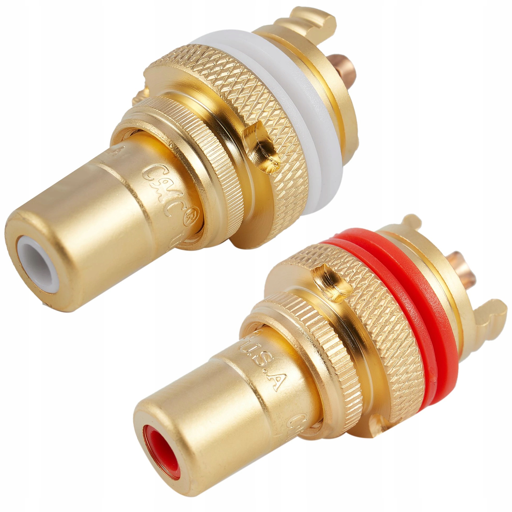 Wysokiej jakości gniazdo RCA na obudowę z pinem sygnałowym wykonanym z miedzi beztlenowej OFC oraz teflonową izolacją.