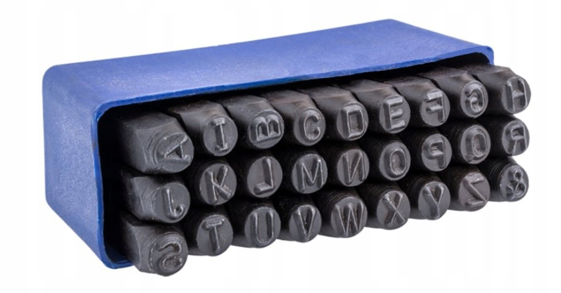 komplet pieczęci zawierający wszystkie litery od A do Z.