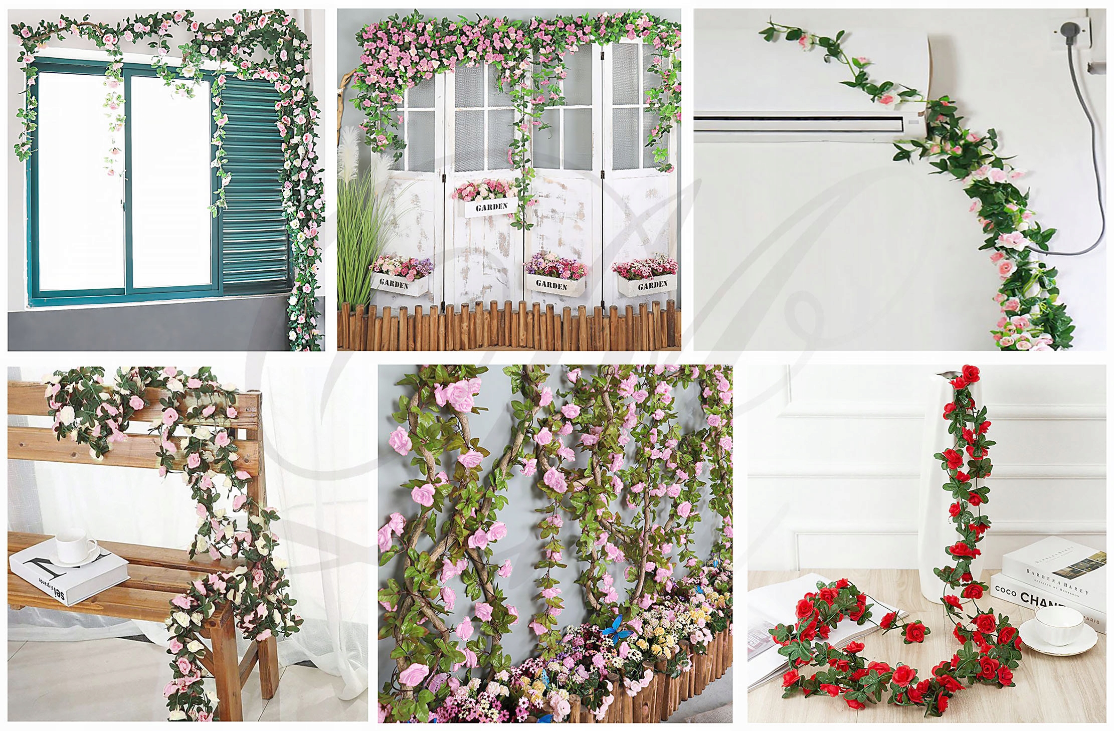 Na dodatkowych zdjęciach przykładowe dekoracji z girland z różami.