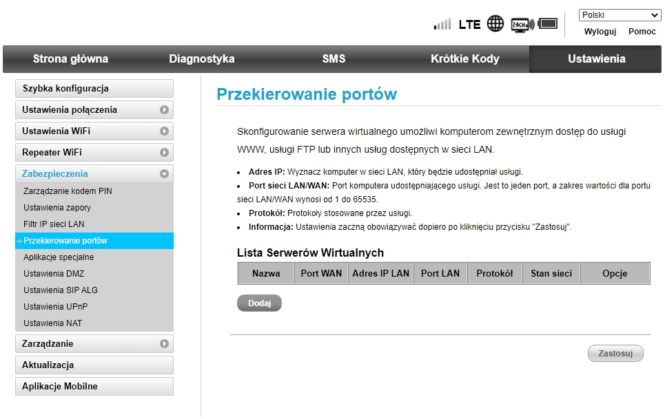 Ponadto urządzenie może być obsługiwane poprzez aplikację na telefon lub tablet, która również jest w jęz. polskim. Wyszukaj w sklepie z aplikacjami program Huawei Hilink.