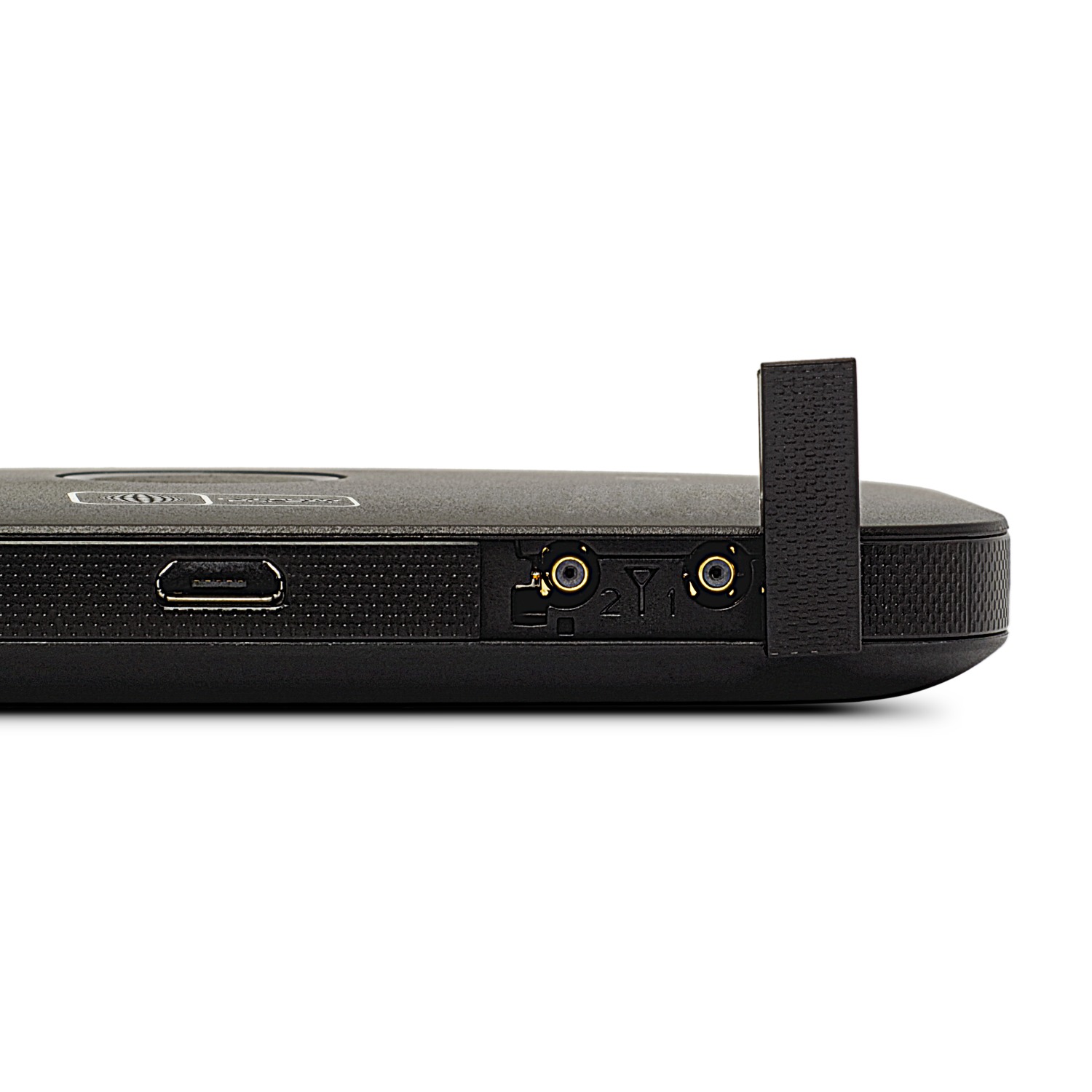 Obok znajdziesz dwa złącza antenowe typu TS-9. Służą one do wzmocnienia odbieranego sygnału internetu mobilnego. Może to być przydatne w miejscach, gdzie sygnał jest słabszy.