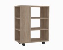 Posiada 4 kółka pokryte gumą dzięki czemu można go łatwo przemieszczać. Boczne półki są regulowane przez co dowolnie ustawisz ich wysokość