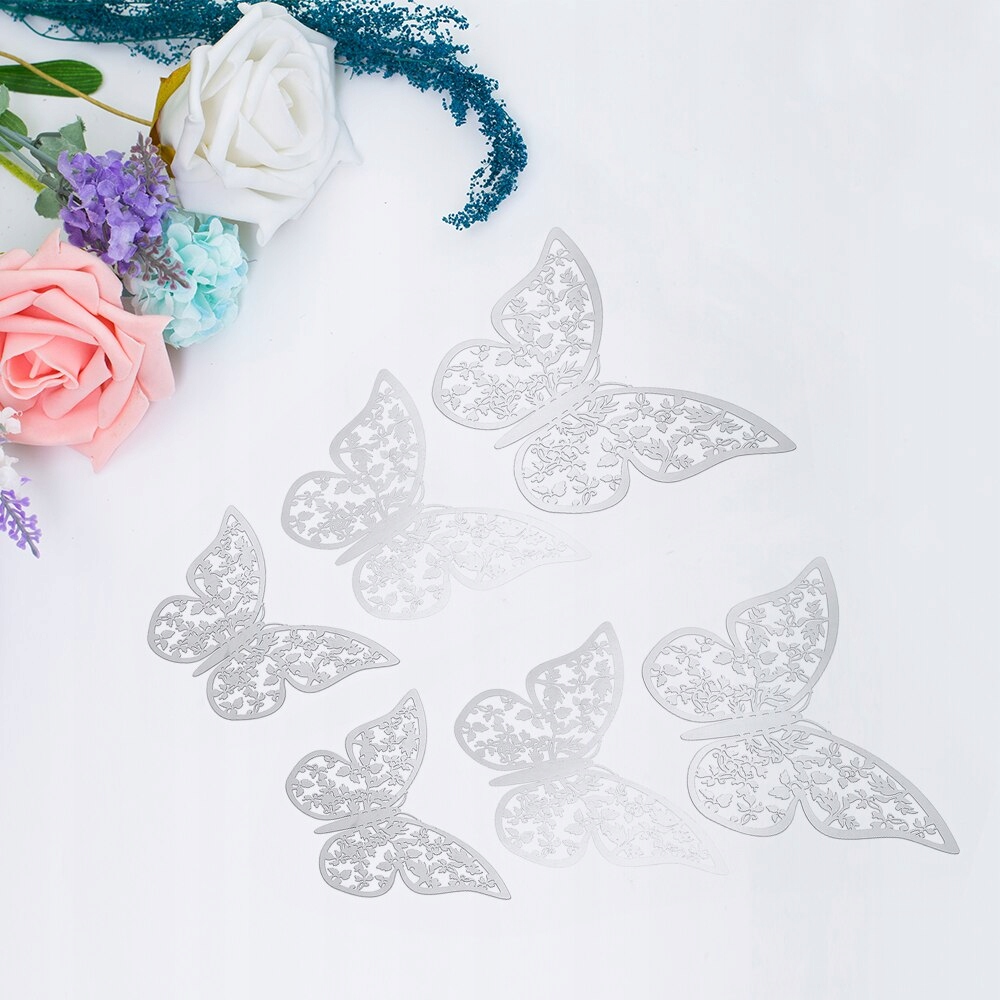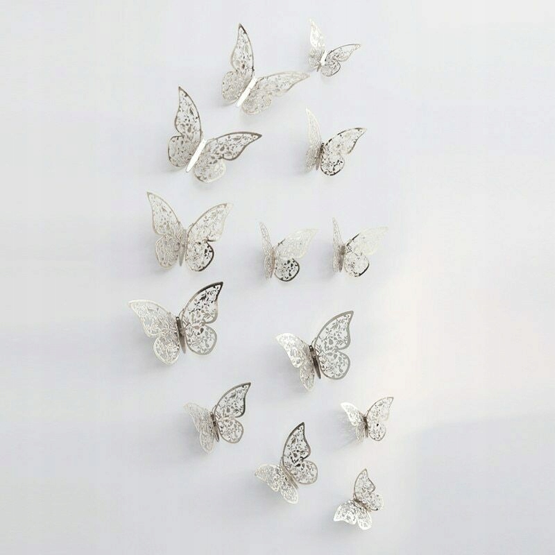 Piękne motyle w kolorze srebrnym - 12 sztuk w komplecie.