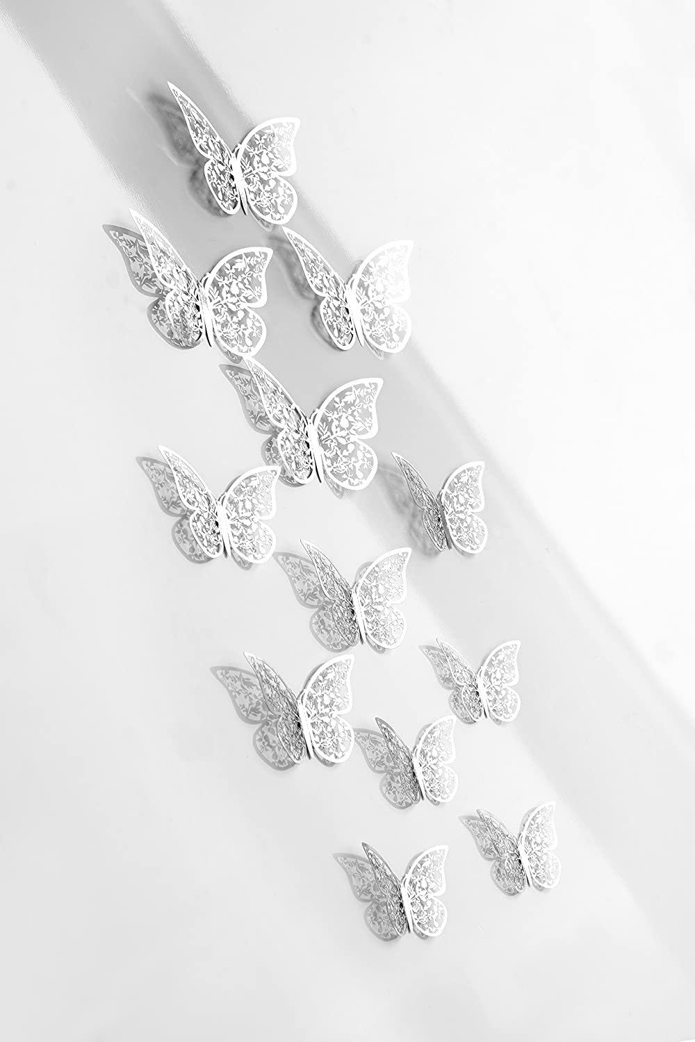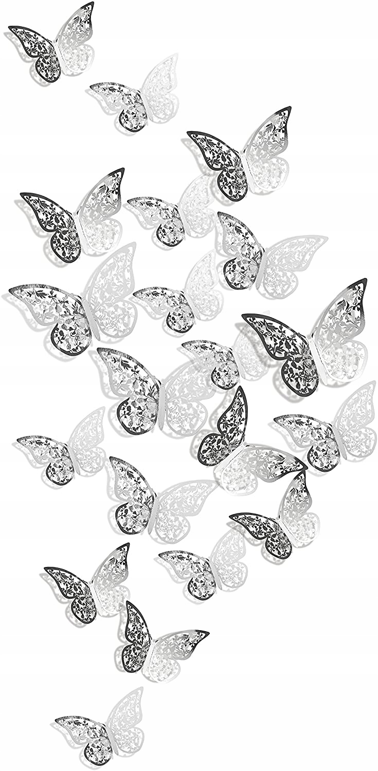 W komplecie jest 12 sztuk naklejek motyli:
