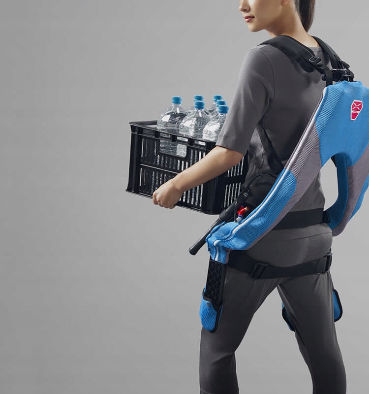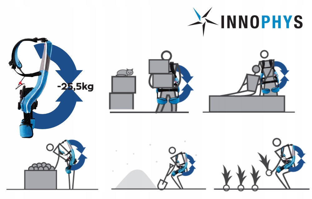 Экзоскелет Muscle Suit максимальное облегчение тела, помогая поднять вес. Использует давление воздуха для повысить качество, комфорт и эффективность работы. Легкий, эргономичный, простой в использовании, без необходимости власть. Производителем экзоскелета Every является японская компания Innophys.