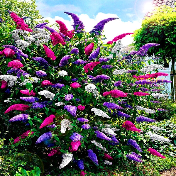 Трехцветная сине-фиолетовая, Royal Red - purpowo-фиолетовая и Белая profussion - белый) создающий красочную композицию. Цветки этого растения выделяют сладкий won, которая привлекает сотни бабочек. Достигает до 2 метров в высоту. Хорошо переносит обрезку, поэтому рекомендуется обрезка ранней весной для формирования и плотности куста. Бабочку буша растет практически на любой почве, но предпочитает места, вдали от сильных ветров. Чтобы получить эффект как на картинке нужно посадить растения на небольшом расстоянии.