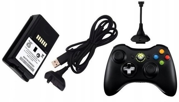 Bateria akumulator do kontrolera (pada) xbox 360 oraz kabel ładujący Kabel Play & Charge w zestawie.
